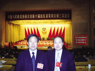 王兆連委員與縣政協(xié)主席許孝義在會(huì)場留影 王兆連委員在山東會(huì)堂