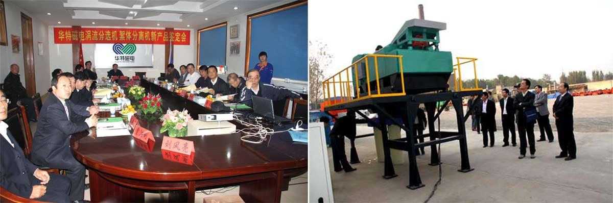 鑒定委員會在聽取匯報、審查資料、現(xiàn)場考察測試和質(zhì)詢后,一致認(rèn)該倆產(chǎn)品分別達(dá)到國內(nèi)領(lǐng)先水平和國際先進(jìn)水平。濰坊市科技局副局長張宏巖、濰坊市經(jīng)信委副主任李玉軍分別講話,對鑒定會的成功召開表示衷心的祝賀,對專家教授們的辛勤勞動表示深深的感謝!同時勉勵企業(yè)要再接再厲,繼續(xù)抓好技術(shù)創(chuàng)新工作,把企業(yè)做強(qiáng)做大。公司董事長兼總經(jīng)理王兆連致答謝詞。他感謝專家們對強(qiáng)磁場渦流分選機(jī)、稀土永磁絮體分離機(jī)所作的客觀公正的評價。他說本次產(chǎn)品鑒定會的圓滿成功,既是對我們?nèi)A特公司技術(shù)創(chuàng)新工作的巨大鼓勵,也是對華特公司技術(shù)創(chuàng)新工作的一次鞭策。我們將不辜負(fù)專家、領(lǐng)導(dǎo)的信任,認(rèn)真按照專家提出的建議,盡快形成系列化并擴(kuò)大生產(chǎn)能力,加大推廣力度,積極拓寬市場應(yīng)用面,使產(chǎn)品早日發(fā)揮社會效益。同時,也以本次鑒定會為契機(jī),奮發(fā)努力,強(qiáng)化管理,進(jìn)一步增強(qiáng)企業(yè)技術(shù)創(chuàng)新能力,把磁電事業(yè)做強(qiáng)做大,為引領(lǐng)行業(yè)技術(shù)進(jìn)步,促進(jìn)社會經(jīng)濟(jì)發(fā)展,特別是在節(jié)能環(huán)保資源綜合利用等新興產(chǎn)業(yè)方面,為社會作出更大的貢獻(xiàn)。