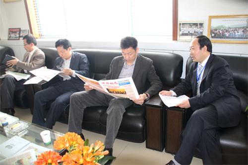公司董事長兼總經理王兆連陪同各位領導在公司接待室對我公司近年發展、重大工程項目、發展規劃特色產業基地創建等一并作了詳細匯報。張局長對我公司近年來技術創新取得的成就給予肯定,并對我公司名牌創建、自主創新等工作進行了指導。隨后參觀公司研發中心和公司展廳。