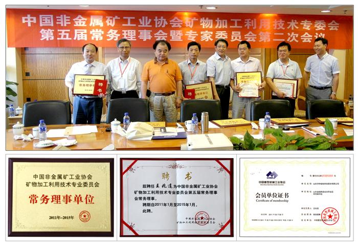 2011年5月15日,中國非金屬礦工業(yè)協(xié)會礦物加工利用技術(shù)專業(yè)委員會第五屆常務(wù)理事會和專家委員會第二次會議在長沙金源大酒店召開。會議批準(zhǔn)聘任我公司董事長兼總經(jīng)理王兆連為中國非金屬礦工業(yè)協(xié)會礦物加工利用技術(shù)專業(yè)委員會第五屆常務(wù)理事會常務(wù)理事,并批準(zhǔn)我公司為常務(wù)理事單位。至此,我公司已分別加入濰坊市循環(huán)經(jīng)濟與新能源發(fā)展促進會、濰坊市工業(yè)技術(shù)研究會、山東省發(fā)明協(xié)會、山東省光彩事業(yè)促進會、中國重型機械工業(yè)協(xié)會、中國重型機械工業(yè)協(xié)會洗選設(shè)備專業(yè)委員會、中國重型機械工業(yè)協(xié)會破碎粉磨設(shè)備專業(yè)委員會、中國重型機械工業(yè)協(xié)會礦山機械分會、中國重型機械工業(yè)協(xié)會帶式輸送機協(xié)會、全國礦山機械標(biāo)準(zhǔn)化技術(shù)委員會等組織,成為其會員、理事、常務(wù)理事、副理事長單位。