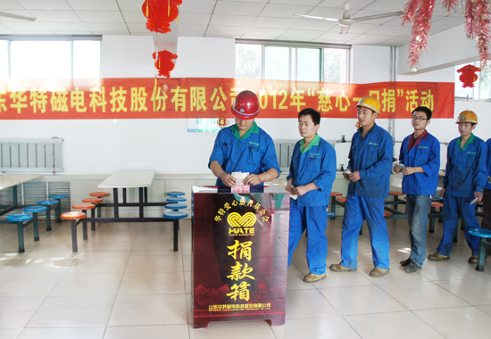 6月11日,公司組織開展了以“攜手慈善、共創(chuàng)和諧”為主題的“慈心一日捐”活動。活動開展現(xiàn)場,公司領(lǐng)導和廣大員工積極響應,紛紛伸出援助之手,踴躍捐款,展現(xiàn)了華特職工關(guān)愛社會困難群體、主動奉獻愛心的良好精神風貌,本次捐款將由城關(guān)街道辦集中上繳臨朐縣慈善總會,全部用于助困、助老、助學、助殘、助醫(yī)、賑災救助及其他慈善公益事業(yè)。
