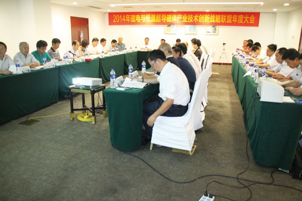 7月9日,值此全國(guó)冶金礦業(yè)科技大會(huì)召開(kāi)之際,2014磁電與低溫超導(dǎo)磁體應(yīng)用產(chǎn)業(yè)技術(shù)創(chuàng)新戰(zhàn)略聯(lián)盟年度工作會(huì)在安徽合肥召開(kāi)。來(lái)自聯(lián)盟單位的各位領(lǐng)導(dǎo)和專(zhuān)家及特聘專(zhuān)家代表參加了會(huì)議。分別有:中科院高能物理研究所超導(dǎo)磁體工程中心副主任、高級(jí)工程師趙玲,東北大學(xué)高鵬博士,武漢理工大學(xué)副院長(zhǎng)彭會(huì)清教授,江西理工大學(xué)研究生院院長(zhǎng)黃萬(wàn)撫教授,鞍鋼集團(tuán)礦業(yè)公司科技部主任徐連生高工,中鋼集團(tuán)馬鞍山礦山研究院科技管理部部長(zhǎng)常前發(fā)教授,河北鋼鐵集團(tuán)礦業(yè)有限公司副總經(jīng)理、設(shè)計(jì)院院長(zhǎng)南世卿博士,蘇州中材非金屬礦工業(yè)設(shè)計(jì)研究院有限公司沈君麟教授級(jí)高工、河北聯(lián)合大學(xué)礦業(yè)工程學(xué)院選礦系主任趙禮兵博士,山東科技大學(xué)副院長(zhǎng)呂憲俊教授,中國(guó)地質(zhì)科學(xué)院鄭州礦產(chǎn)綜合利用研究所科技處副處長(zhǎng)張成強(qiáng)研究員,山東耐火材料集團(tuán)有限公司潘東華副總經(jīng)理,山東華聯(lián)礦業(yè)股份有限公司總工劉全軒高工,中國(guó)煤炭工業(yè)秦皇島進(jìn)出口有限公司方海濱高工,安徽雷克環(huán)??萍脊煞萦邢薰径≡?wù)副總,濰坊新力超導(dǎo)有限公司技術(shù)中心主任張義廷高工等。聯(lián)盟特邀專(zhuān)家代表中南大學(xué)孫仲元教授,五礦集團(tuán)邯邢礦業(yè)岳潤(rùn)芳總工、楊計(jì)軍部長(zhǎng),以及唐山陸凱科技李中昆經(jīng)理和來(lái)自聯(lián)盟單位的其他代表專(zhuān)家參加了會(huì)議。