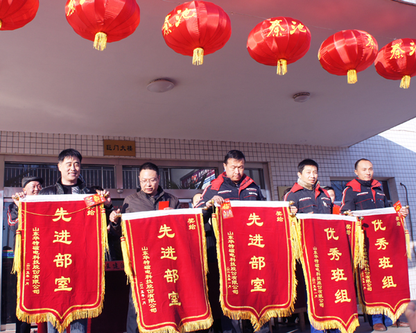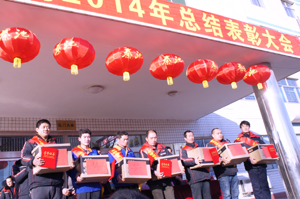 2月8日,公司在辦公樓前廣場召開2014年度工作總結(jié)表彰大會。會議由公司常務副總裁劉風亮主持,公司工會主席王學軍宣讀了公司表彰決定。公司領(lǐng)導分別為十佳員工、先進工作者和先進集體頒獎。公司董事長兼總裁王兆連作重要講話,對節(jié)日期間安全工作進一步強調(diào),并祝大家新春幸福,萬事如意。