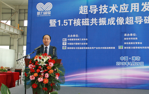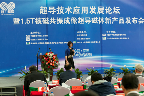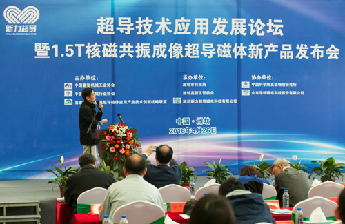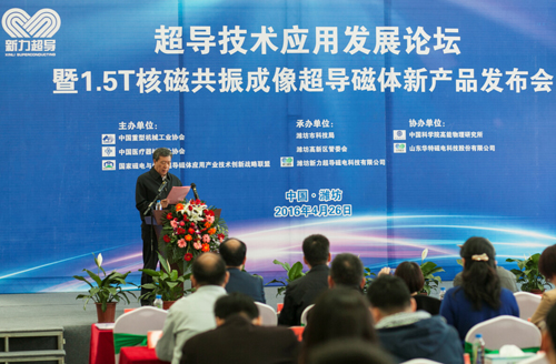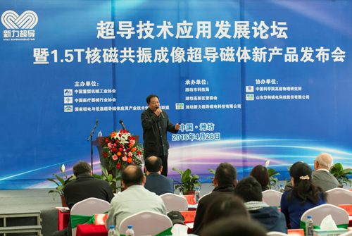 2016年4月26 日,“超導(dǎo)技術(shù)應(yīng)用發(fā)展論壇”和“1.5T(特斯拉)核磁共振成像超導(dǎo)磁體新產(chǎn)品發(fā)布會”在濰坊新力超導(dǎo)磁電科技有限公司隆重召開。