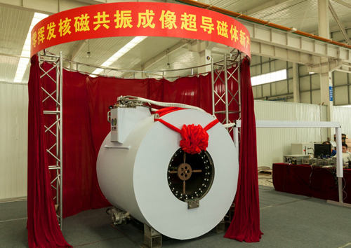 中科院甘子釗院士、濰坊市相關(guān)領(lǐng)導(dǎo)、新力超導(dǎo)公司董事長王兆連共同為1.5T核磁共振成像超導(dǎo)磁體新產(chǎn)品進(jìn)行了揭幕儀式。