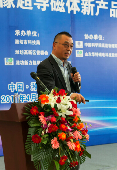 濰坊高新區(qū)管委會張龍江副書記講話,對出席論壇的專家表示感謝,對論壇主辦單位表示祝賀,簡要介紹了高新區(qū)以科技創(chuàng)新驅(qū)動地方發(fā)展的幾大舉措,表揚了新力超導(dǎo)自成立以來在超導(dǎo)技術(shù)應(yīng)用領(lǐng)域投入巨大的人力和財力進(jìn)行產(chǎn)品研發(fā)、成果轉(zhuǎn)化及產(chǎn)業(yè)化推廣的創(chuàng)業(yè)精神,表示高新區(qū)管委會將重點關(guān)注并支持這類將來可引領(lǐng)地方經(jīng)濟(jì)發(fā)展的領(lǐng)軍產(chǎn)業(yè)和企業(yè)。