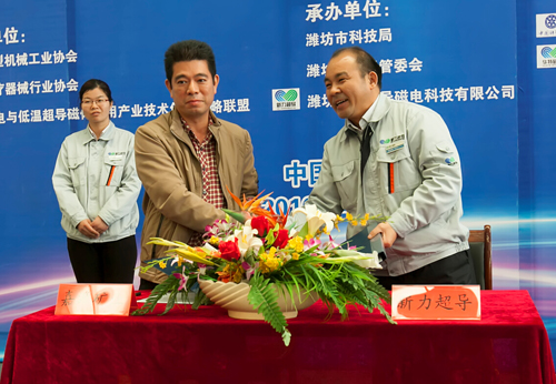 在論壇舉行期間,廣東嘉源礦業(yè)有限公司為了迅速擴(kuò)產(chǎn)提能,提高企業(yè)競爭力,與濰坊新力超導(dǎo)公司進(jìn)一步深入合作,林東耀副總經(jīng)理與新力超導(dǎo)公司常務(wù)副總經(jīng)理李培勇先生代表兩公司簽訂了3臺5T/500低溫超導(dǎo)磁選機(jī)和1臺5.5T/300低溫超導(dǎo)磁選機(jī)訂購合同,合同總金額3250萬元。