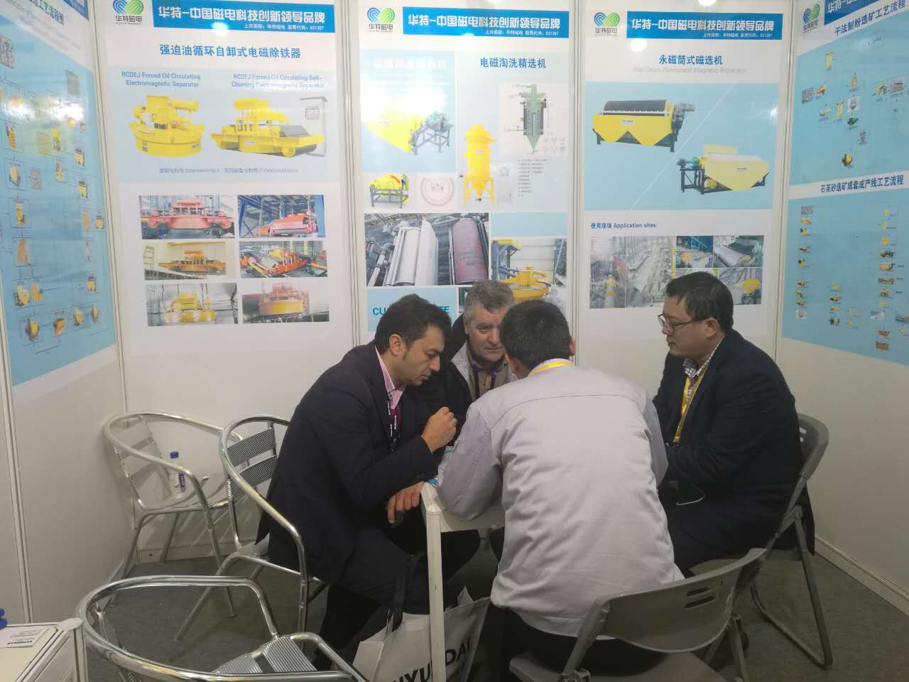 本屆展會期間,公司展出的強迫油循環電磁除鐵器、5.5T低溫超導磁選機、強制油冷卻立環高梯度磁選機、提精降渣磁選機等一系列國際領先水平的尖端設備備受關注,引來諸多國內外礦山企業客戶到展位交流洽談,并達成初步合作意向。此次會議,為公司進一步開拓國內外市場奠定了良好基礎。
