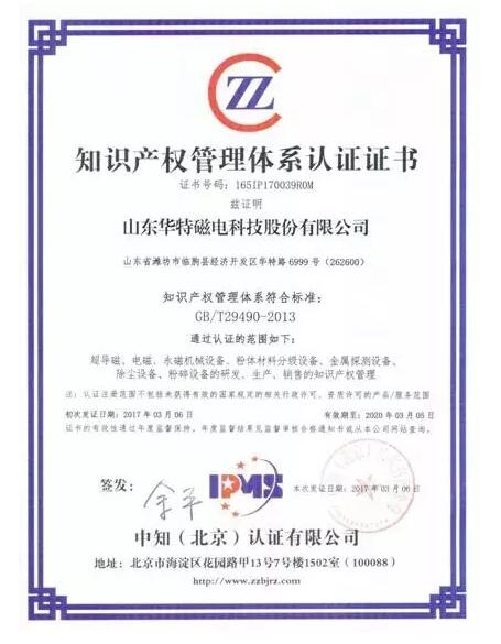 2017年3月6日,華特公司順利通過中知(北京)認(rèn)證有限公司知識產(chǎn)權(quán)管理體系認(rèn)證審核,并獲得知識產(chǎn)權(quán)管理體系認(rèn)證證書,這標(biāo)志著華特公司在知識產(chǎn)權(quán)管理方面邁入一個新臺階。