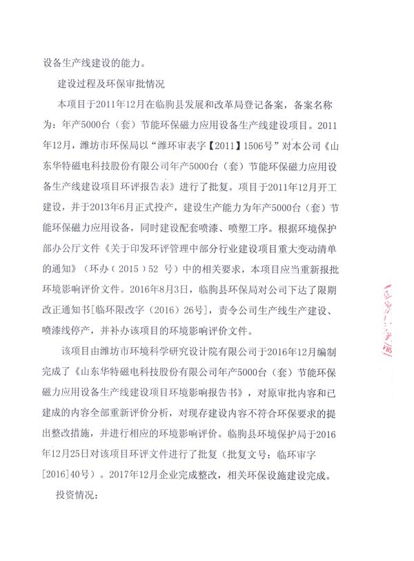 根據《建設項目竣工環境保護驗收暫行辦法》的有關規定,我公司于2017年12月27日組織年產5000臺(套)節能環保磁力應用設備生產線建設項目環保驗收。現將驗收意見予以公示,公示期為2017年12月29日-2018年1月28日。
