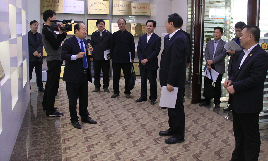 4月3日上午,山東省省委統戰部常務副部長趙強、處長韓慶新、副處長李同舜、調研員湯衛星、濰坊市委統戰部常務副部長王志明、副部長、市民宗局局長肖建華、科長張健一行蒞臨華特公司就臨朐縣新的社會階層開展調研工作,濰坊市人大常委會副主任、臨朐縣委書記顧建華,縣委副書記田元君,縣委常委、統戰部部長衣利民,臨朐縣經濟開發區管委會主任、城關街道黨工委書記白文玉等領導陪同活動,山東省第十二屆政協常委、全國工商聯科技裝備業商會副會長、非公經濟代表人士、華特公司董事長兼總裁王兆連帶領公司領導熱情接待。