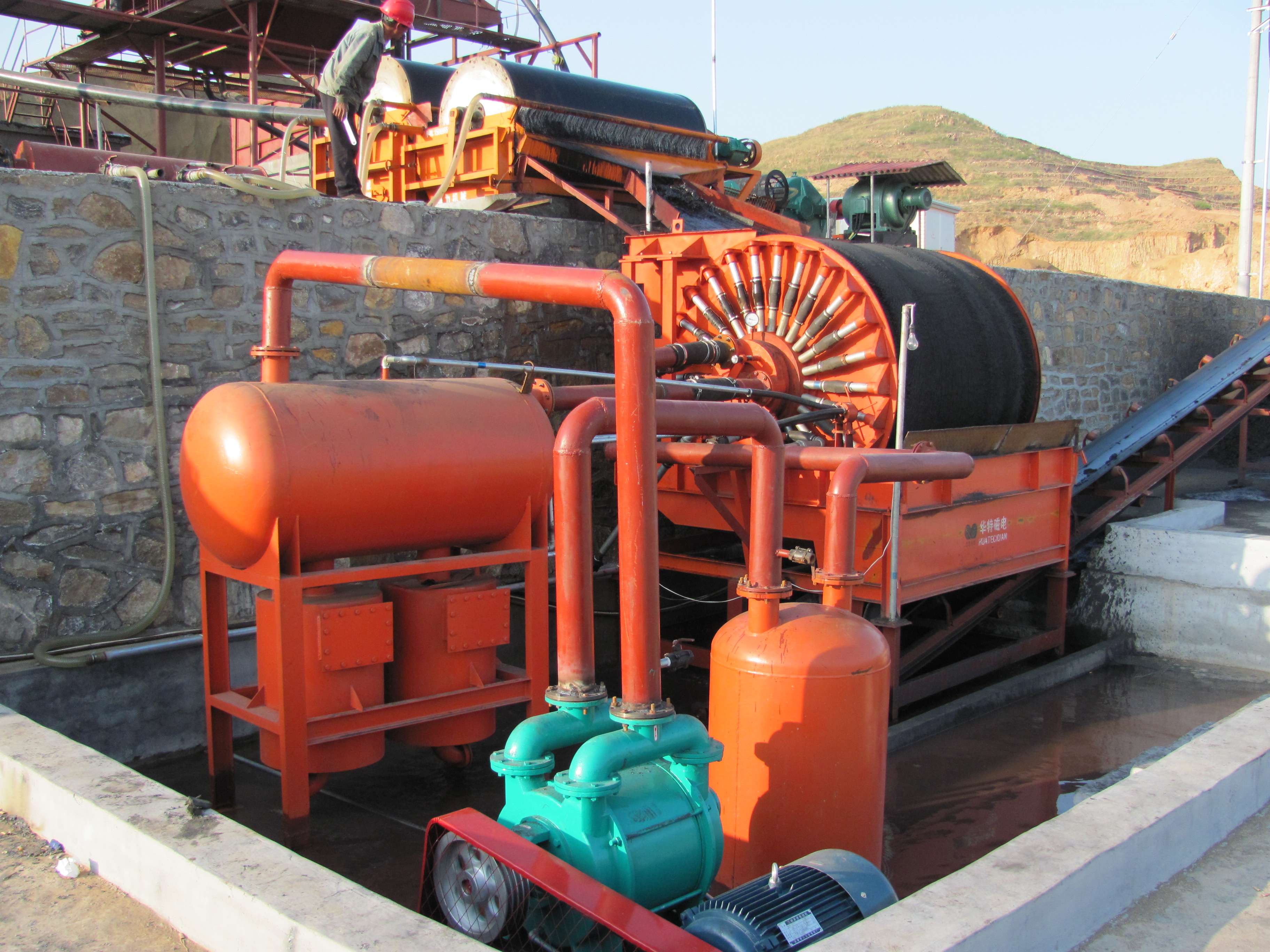 ◆本機依靠圓筒內部磁系作用形成濾餅,磁性物料在磁力和顆粒本身重力作用下呈磁簇狀吸附在濾布上,吸附速度快,效率高。