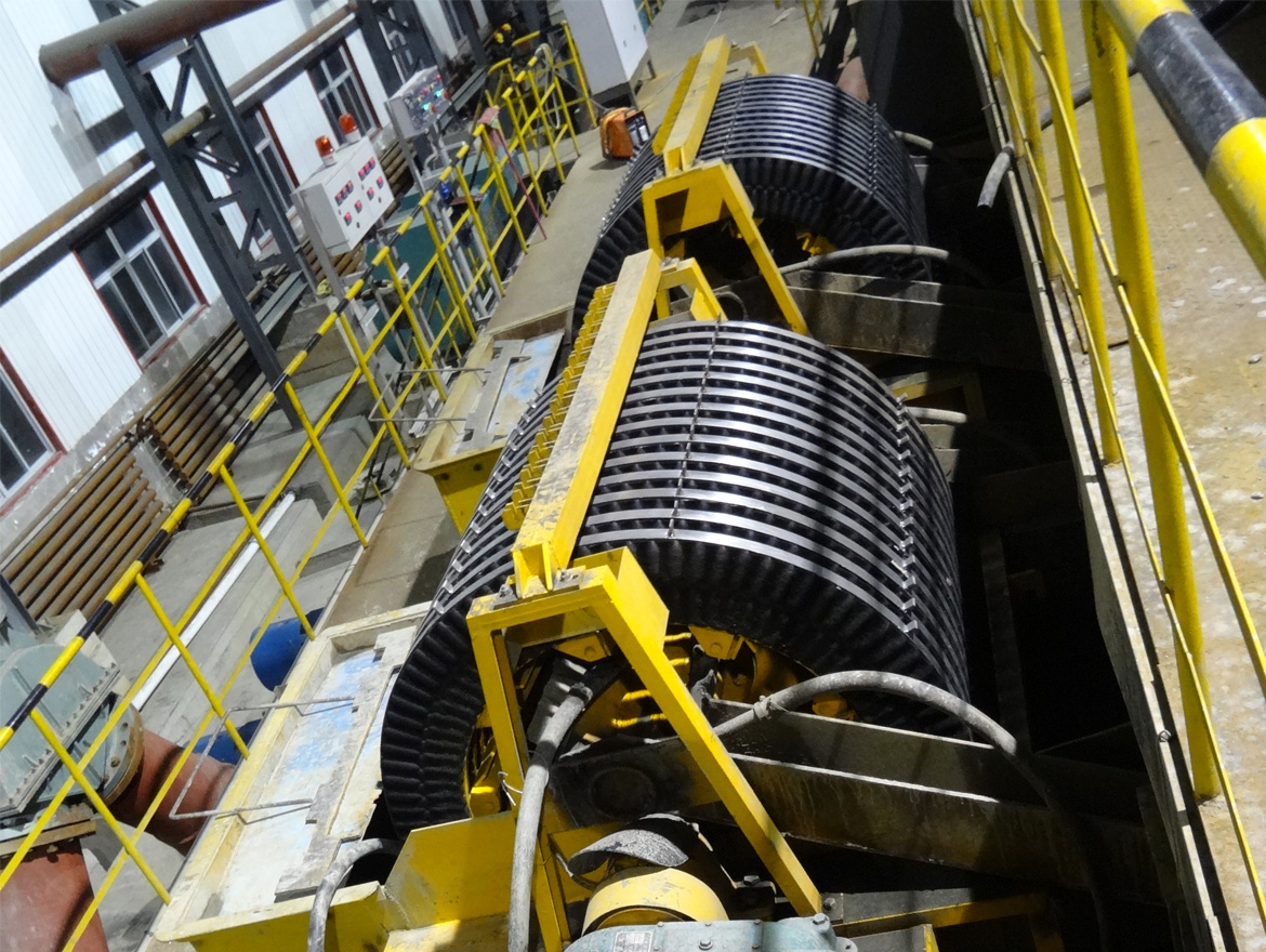 YCW系列無水卸料回收機是我公司根據國外先進經驗研制開發(fā)的一種新型產品。該磁系采用一組由外裸磁塊鑲嵌而成的磁環(huán),按照一定間隙排列而成。該磁系直接作用磁性物料,磁場強度高,作用梯度大,回收率可高達85%-95%,特別是采用V形刮板,借助磁性物料自身重量,實現(xiàn)了無水或少水一次卸料。